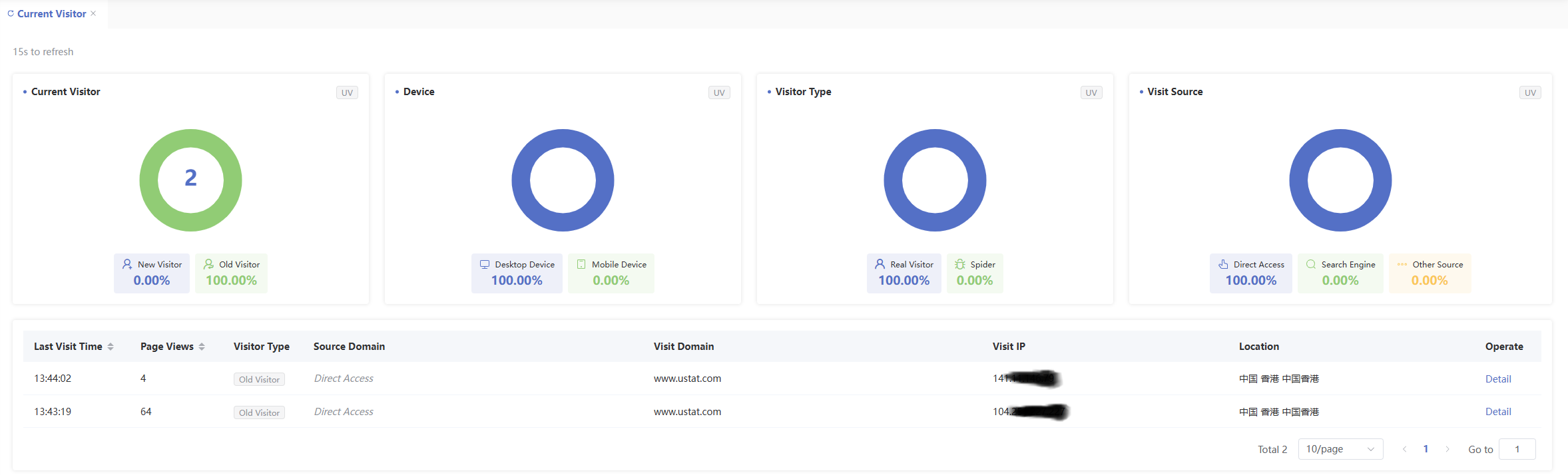 After logging into UStat and selecting a website, navigate via left sidebar → [Current Visitors].