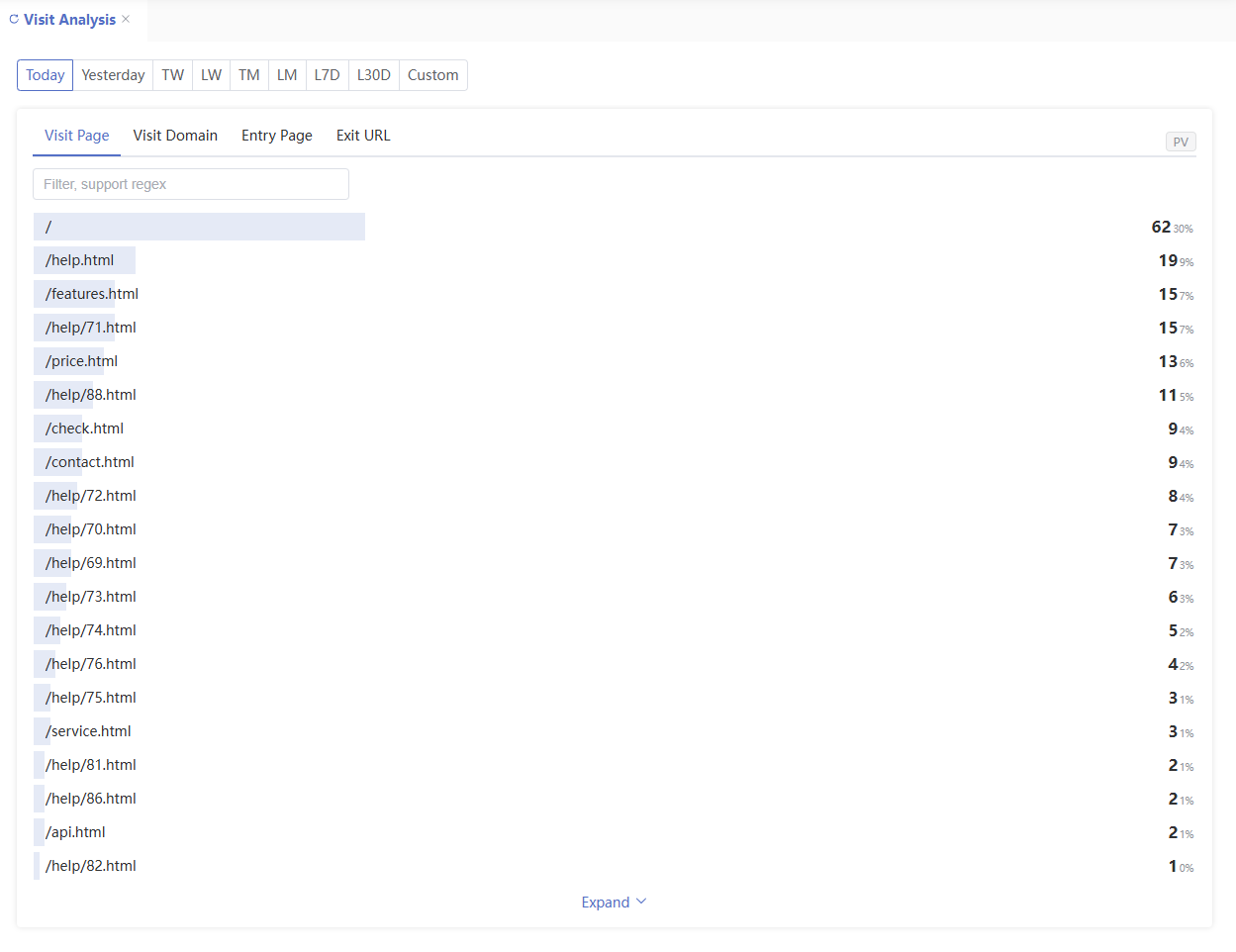 - Top Pages: All visited pages (regardless of entry point)